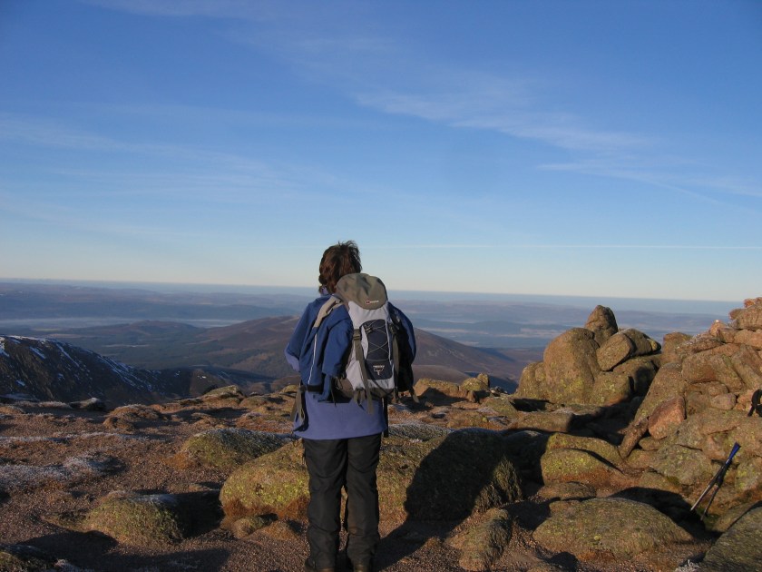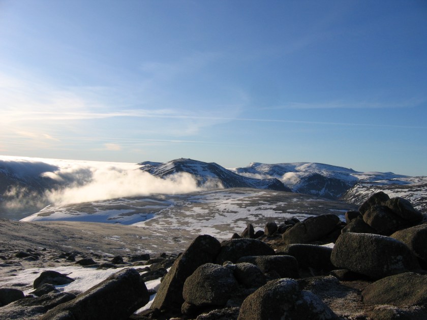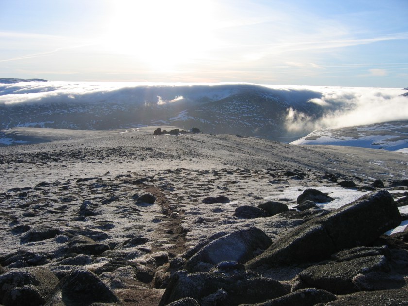 Thankfully with the ground so frozen the normally heavily eroded Lairig an Laoigh path was a joy to walk on (this was in the days before the footpath maintenance team had turned this into the stairway to heaven) and eventually Bynack More made an appearance.