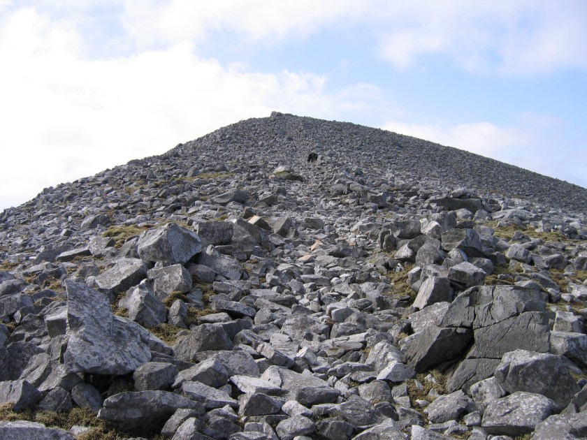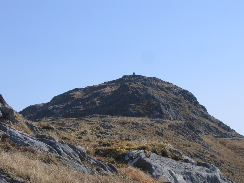 Looking towards the summit cairn. A zig-zag path leads effortlessly up through the crags to the top.