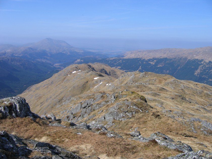 The ridge stretched ahead and the summit appeared to be a long way away but the ridge was a joy to walk on, sunny, warm and ever increasing views.