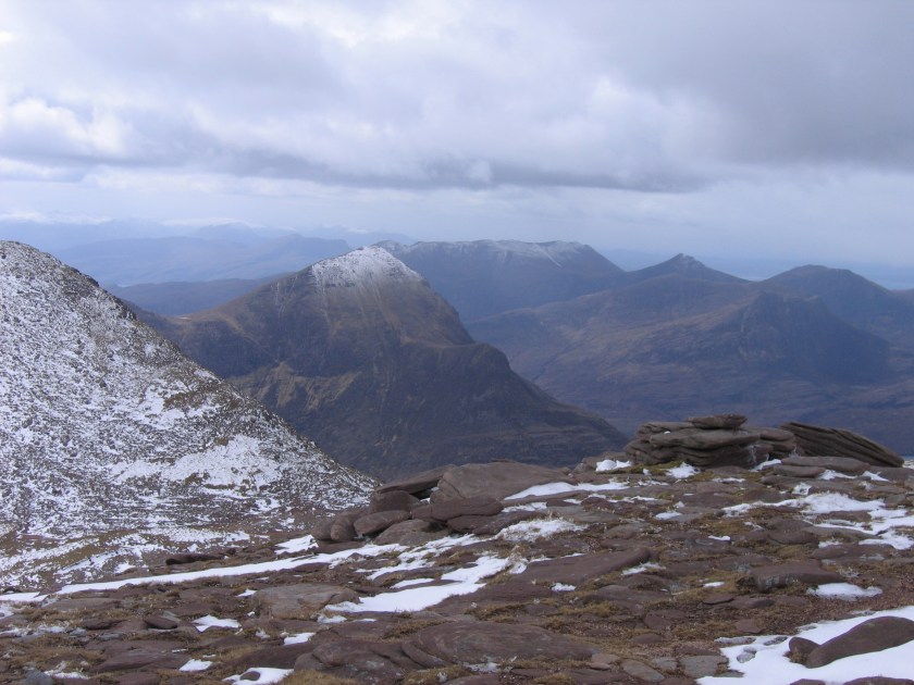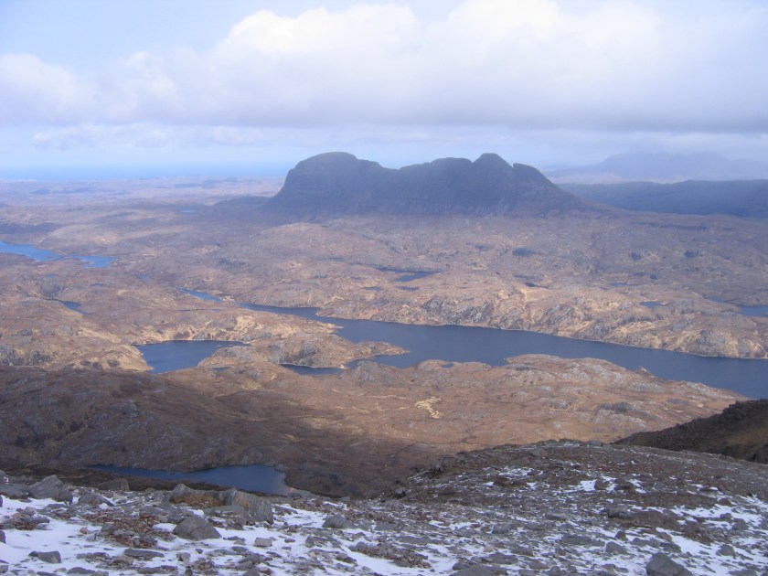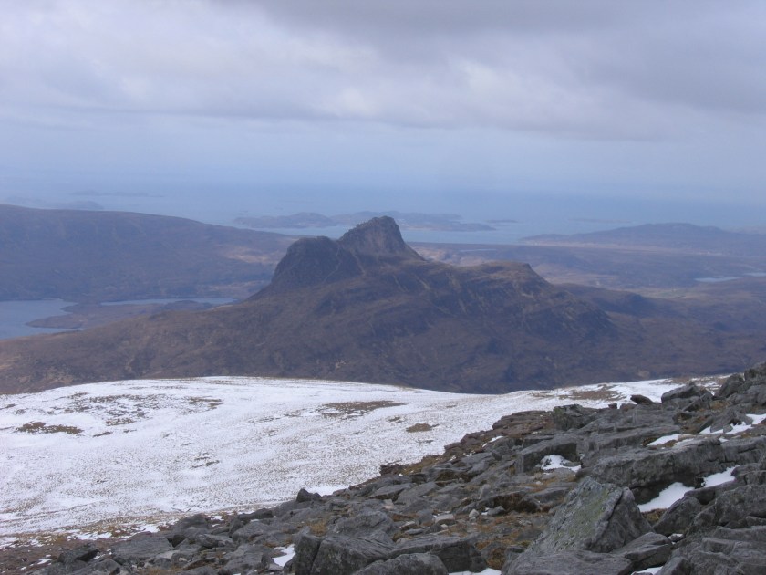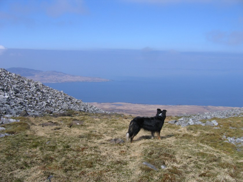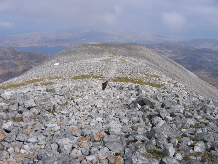 Week 2 was all change. I was off to Harris, we were joined by Stewart and the weather had deteriorated. On the way to Ullapool to catch the ferry to Stornoway we climbed Cul Mor as both Molly and Stewart needed to climb it for their Corbett rounds. It was extremely windy with snow showers but thankfully visibility was excellent outside the snow showers.