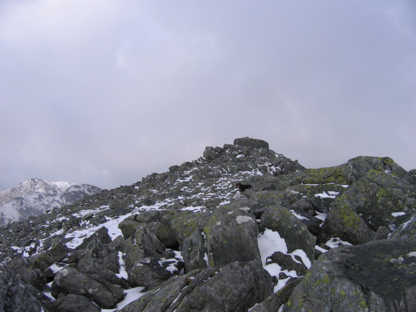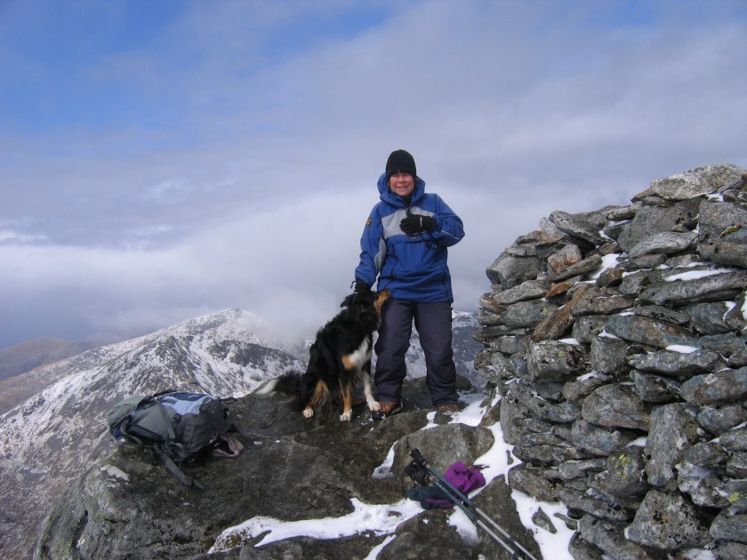 Just after the 602m top is a short scramble. It was good to put hands to rock again, hardly a scramble for Molly as she ran up in a couple of bounding strides………………show off!!