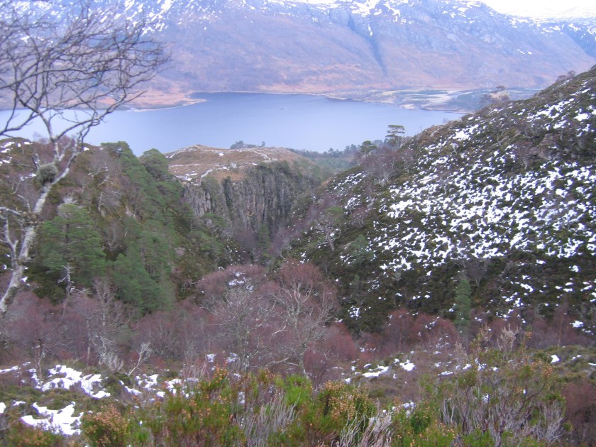 We reached the lochans and de-cramponed. We then continued down the other side of the Mountain Trail loop giving fantastic views up and down the gorge of the Kinlochewe Fault.