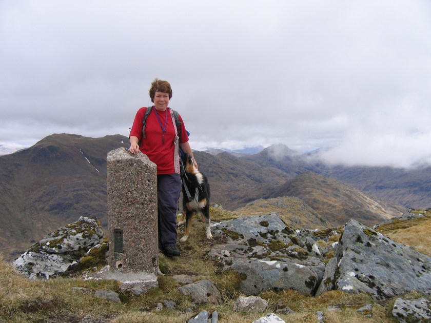 After meeting the masses on the summit we took a lengthy and well earned break for lunch before continuing past the trig point and down the grassy An Diollaid ridge where we picked up another baggers path down to the bridge at Foalach.
