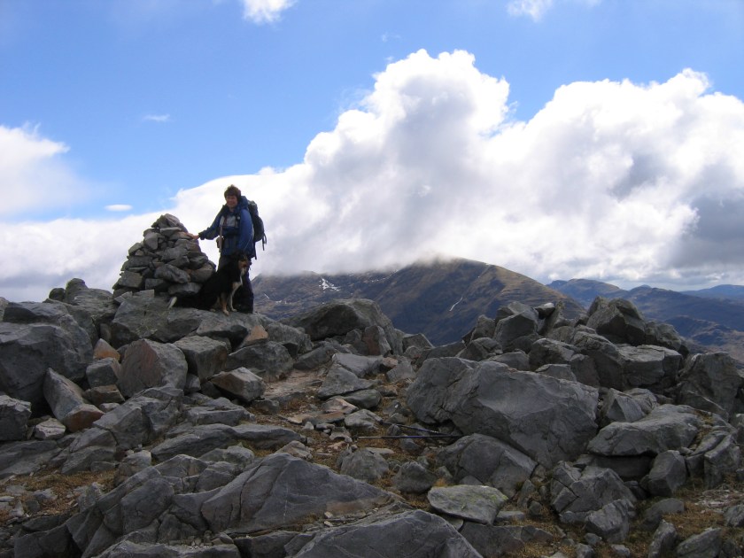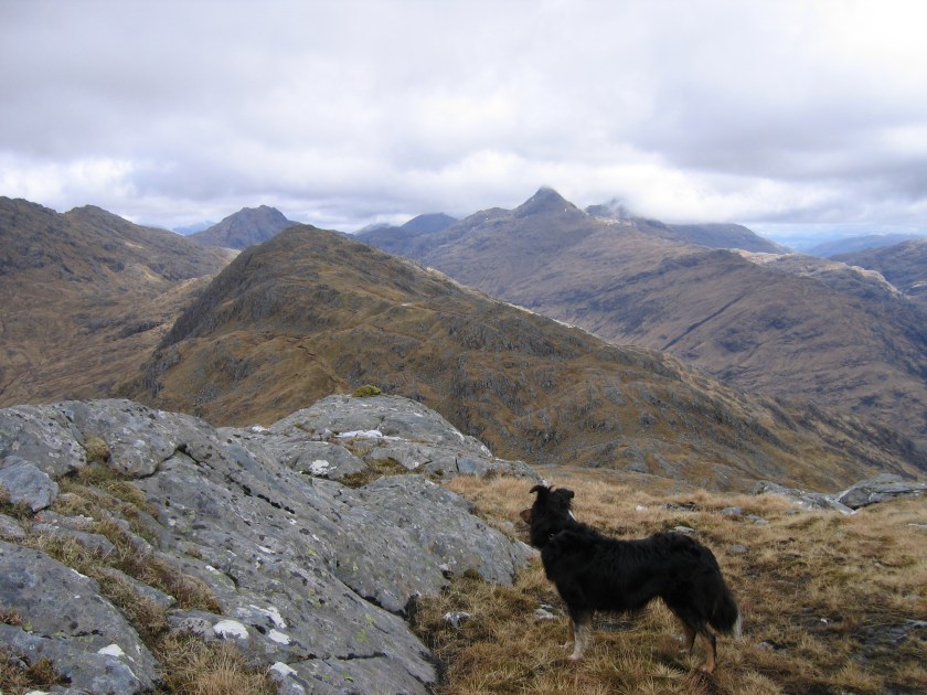 I know we weren’t exactly pushing the pace but it took almost 4 hours to get back to the bunkhouse from the summit, even so Molly still managed to find the energy for a game of stick throwing in the loch on the way down.