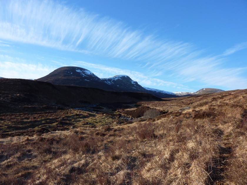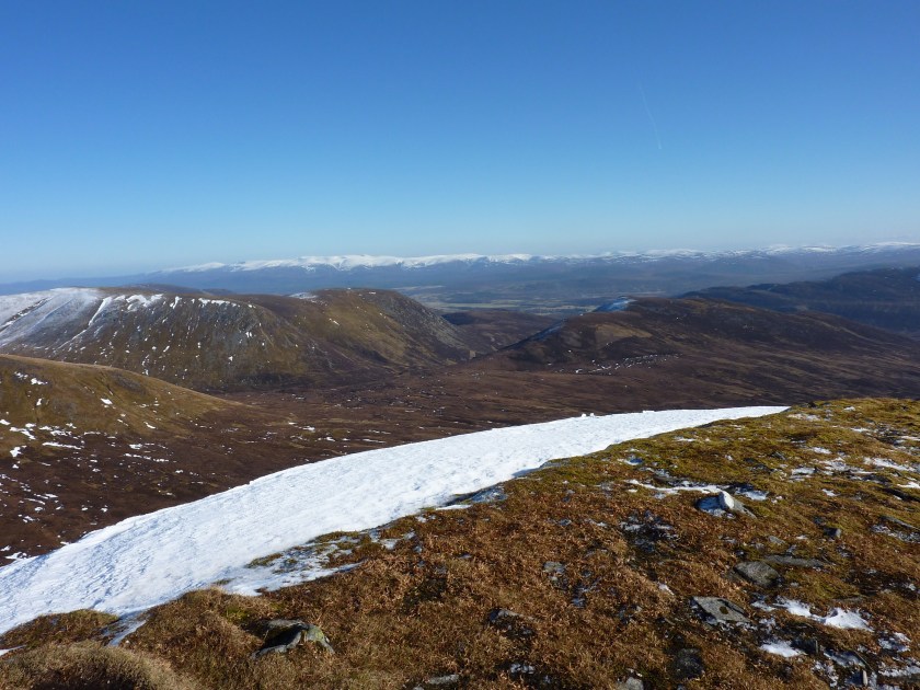 The 5 miles between the second and third Munro summits is for me, the highlight of the walk and we have always been lucky enough to save this route for a good day. The Monadhliath are the heart of ‘Big Sky’ country where the views are endless, the terrain easy and route finding a doodle…………………….who could ask for more?