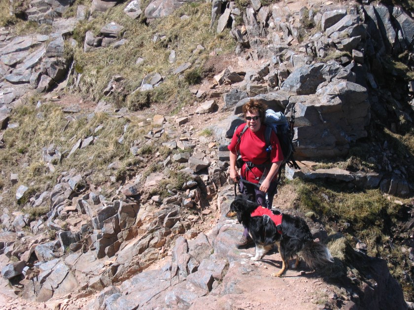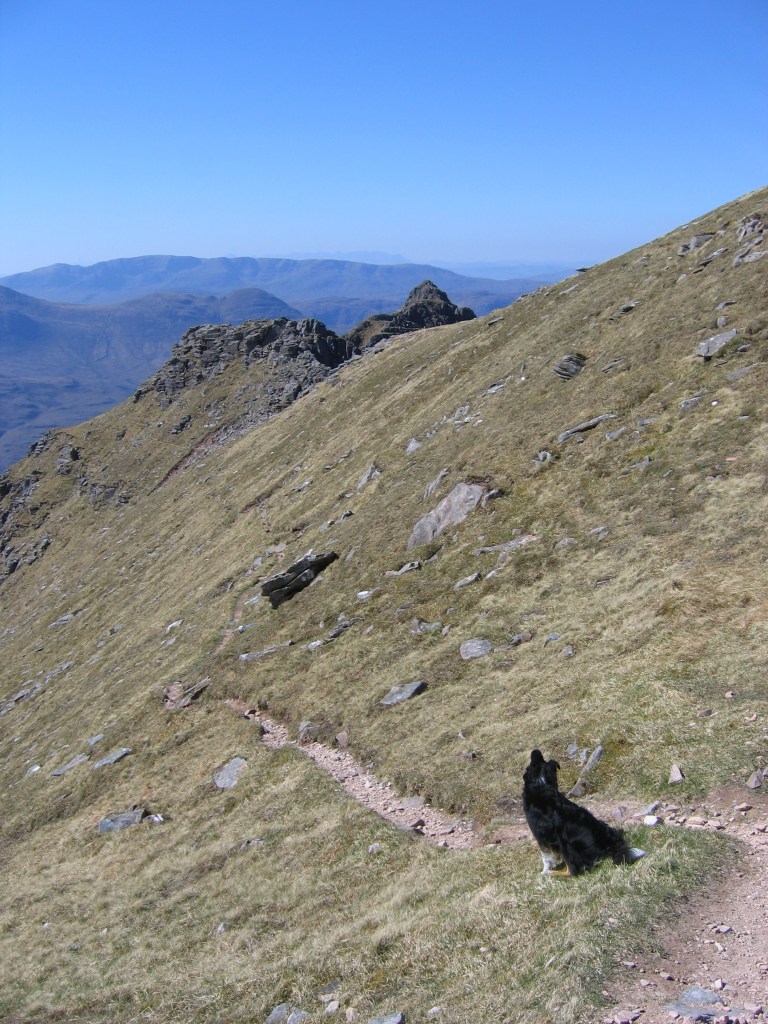 The bypass path is very straightforward but extremely exposed and I was glad that Molly was firmly tethered with her lead and harness. The exposed sections were thankfully over very quickly and the easy slopes of Mullach an Rathain were a welcome site.