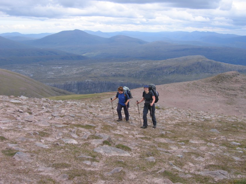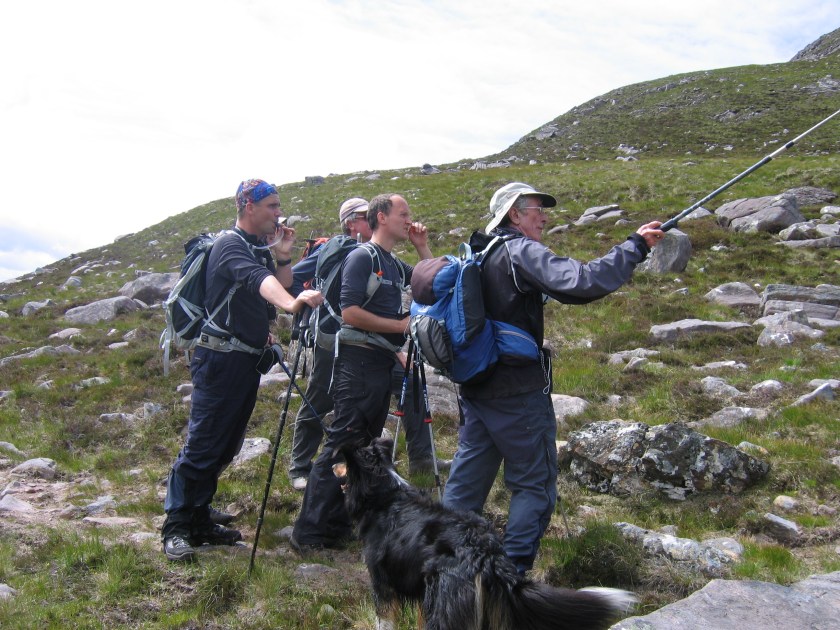 After a convivial evening in The Kinlochewe Hotel the night before we assembled in the car park at Incheril where it was already very warm, although Will who had just returned from Army service Afghanistan where it was 55oc, was feeling a bit chilly.