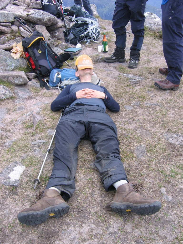 That evening we had a fantastic meal in The Kinlochewe Hotel. The hotel’s owners mark Munro completions with a completion certificate, bottle of bubbly and a photo for the Munro completer’s board in the bar. After the meal we adjourned to the sitting room to bask in the glow from the many sunburnt noses and heads on display.
