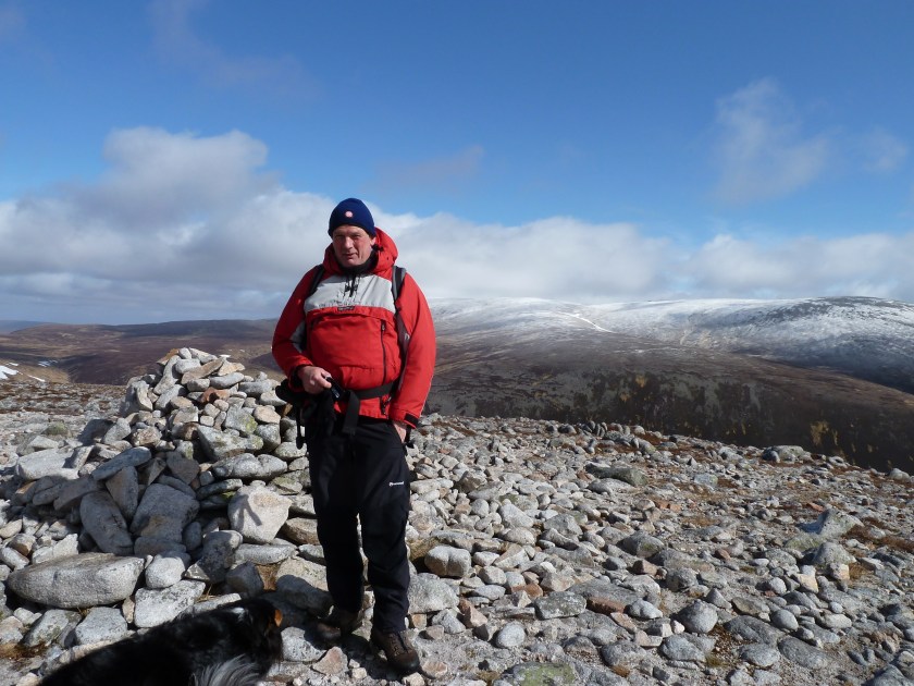 Bill at the summit of Beinn a’ Chaorainn with Beinn Mheadhoin beyond