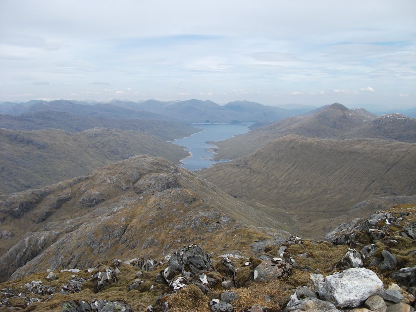 Summer had arrived early in the north west highlands and unlike the rest of the country it seemed keen to stay. I arrived at the end of the road after the nausea inducing drive along Loch Arkaig with the car thermometer already reading 18oc and I was pleasantly surprised to find myself the only car at the start; one of the joys of midweek hill walking.