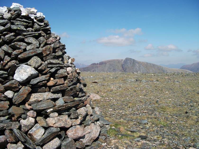 We climbed to the summit of Beinn Lair and lingered in the shade of the massive cairn before we were overcome by heatstroke (not sure if I have mentioned how hot it was)? We lapped up views across the trench of the Dubh Loch to the north west ridge of A’ Mhaighdean, our proposed route of ascent for tomorrow.