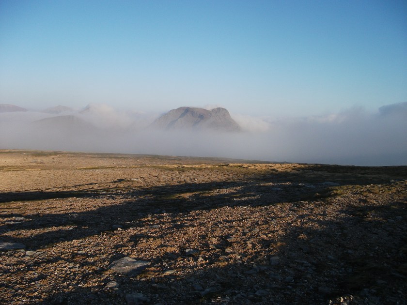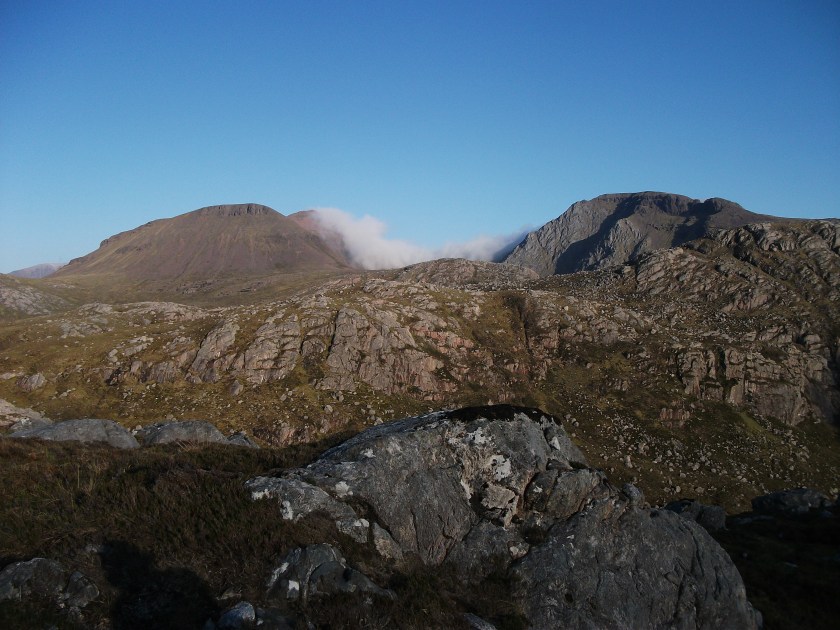 A check of our watches revealed it was early, nearly 5 p.m so in moment of madness we reviewed our plans and decided that if we climbed Beinn a’ Chaisgein Mor in the cool of the evening we could climb A’ Mhaighdean and Ruadh-stac Mor tomorrow and then walk out, completing the trip a day early. It seemed like a good idea at the time!