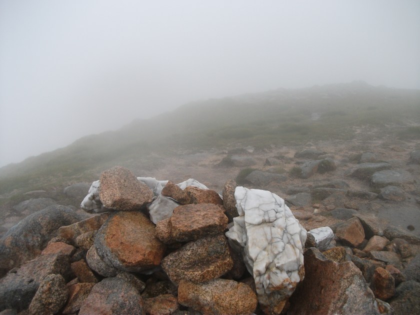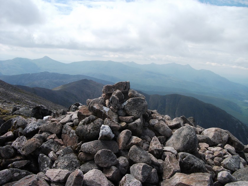 The summit cairn appeared mercifully quickly, a summit photo was taken and a restorative chocolate bar rapidly consumed.