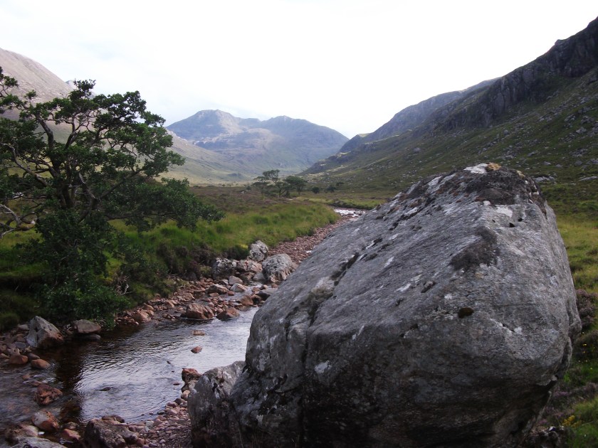 After a boulder hop across the river we picked up the path back to Larachantivore where the river crossing didn’t even reach the top of our boots.
