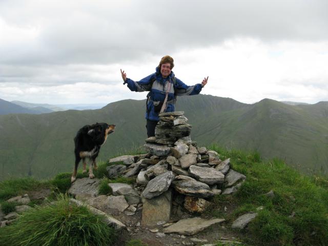 Eventually, after 3 years accompanying Stewart up a multitude of Corbetts (which doubled up as voluntary work for Age Concern), I was delighted to be there when he climbed his final Corbett. A happy day with friends and family which ended with Milly walking into the shop at the Resipole campsite and stealing tennis balls from the display………….at least the shopkeeper saw the funny side.