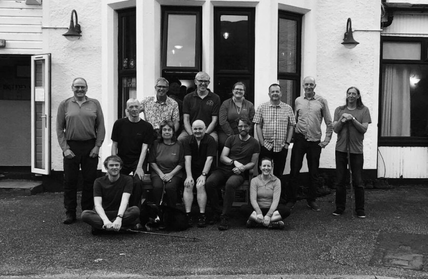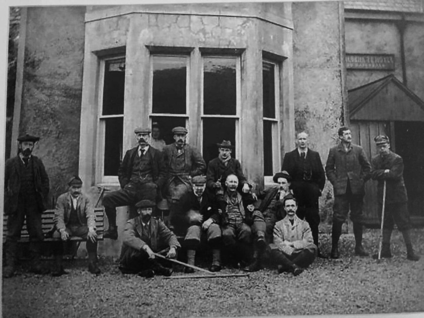Back at the Kinlochewe Hotel a photograph of Sir Hugh Munro attending an SMC meet in 1899 was recreated by the group. Sir Hugh and 2019 Hugh are on the far left.