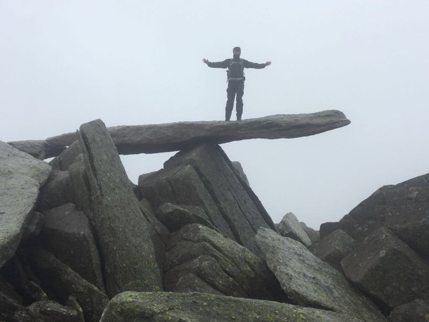 The weather was already closing in as we arrived at Ogwen Cottage. I had left my heavy duty waterproof coat behind so spent the day wearing Andy’s rather large MR jacket! We weren’t concerned with aesthetics, bagging our summits was the order of the day. We took the easier route up the south ridge of Tryfan, we didn’t jump the Adam and Eve stones, we bypassed Bristly Ridge on a steep scree path and slipped and slithered over the greasy rock onwards to Glyder Fach.