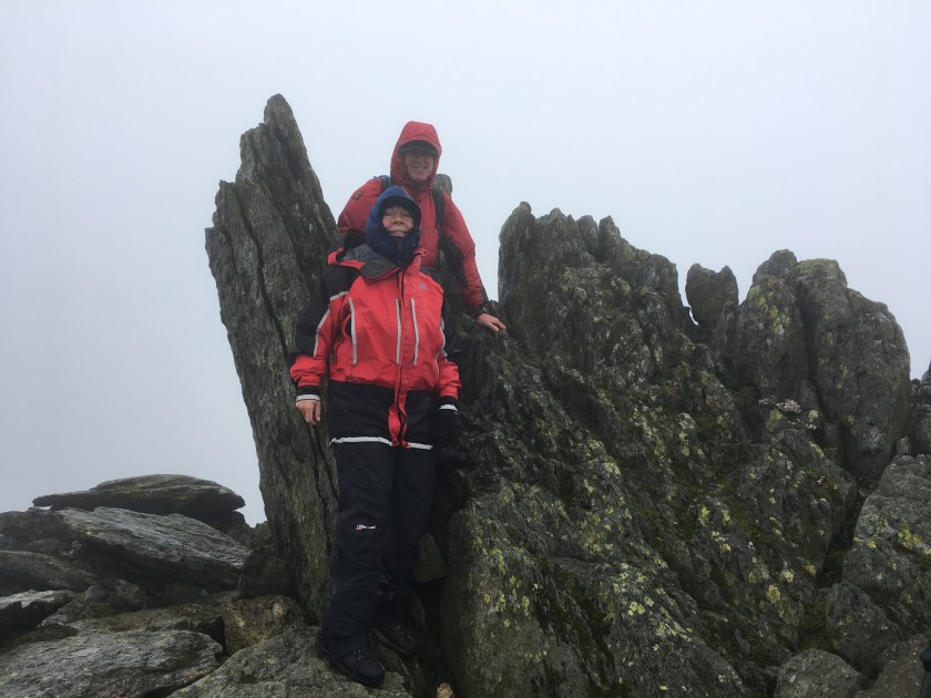 Despite being English l have to admit that l have never walked in The Lakes so l thought l had better rectify this. Following a few days Donald bagging in the Borders, Ralph and l travelled down to our accommodation near Keswick allowing ourselves four days to tackle to 6 Furths at a very relaxing pace. I had several routes planned up each hill. These were weather dependent and often by the simplest route as Ralph was only a year old and had no scrambling experience. The forecast for the first day was distinctly Scottish. We arrived at the carpark in Wasdale in torrential rain and wasn’t surprised to be the only car there. The NT warden came over to warn against going up the hill in such conditions but after assessing my mountaineering credentials he relieved me of £6.50 and said I was OK to go! l set off up the Green How path to the summit of Scafell. I took a beeline for the summit, over walls and through fields, forgetting that in England the access rules are different and you are supposed to stick to rights of way……..oops! Up and down in mist and rain, not a glimpse of the Wasdale valley that l was looking forward to. Next day l was back at a rather busier carpark to climb Scafell Pike, Ill Crag and Broad Crag via Lingmell Col. After spending most of the last 2 years bagging Grahams today was a shock. People and paths, so many people. It was a relief to leave the summit of England to walk to Broad Crag and Ill Crag and leave the hoards behind. Next time my route choice will be more inspired.
