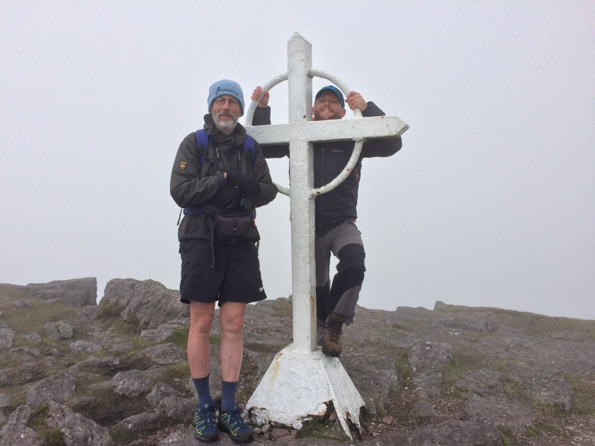 The following day we treated ourselves to a well-earned rest in preparation for Mark’s Furth completion on Brandon Mountain. With a deterioration in the weather we opted for a straightforward route up and down the Saints Road Pilgrims route. A huge shrine greeted us at the carpark and we followed the 14 Stations of The Cross and a line of reflective white posts all the way to summit where we were welcomed by yet another huge cross and celebrated Mark’s achievement with another bottle of champagne.