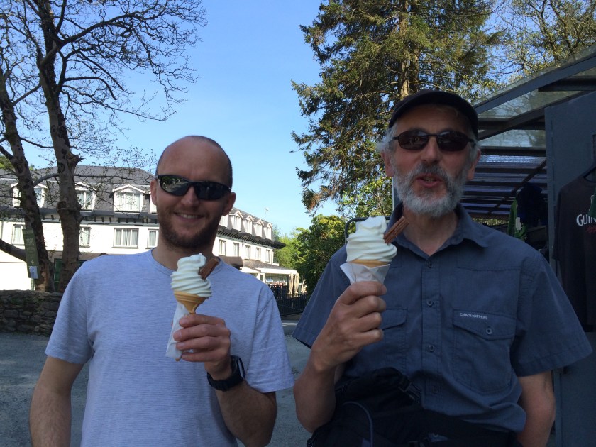 So how do you get from Aviemore to Dublin? The options were endless. Planes, trains, ferries and cars were all considered, but, as l am not really a fan of driving long distances, flying was the easiest (and indeed the cheapest option). Happily, three friends had also decided to join the trip. We met at Dublin airport and collected our hire car, thankfully equipped with a Satnav. Robin had travelled by plane from Edinburgh, Mark came by train and ferry from Yorkshire and Frank and l flew together from Inverness. After navigating through the Dublin motorway network, adjusting to the metric speed limits and negotiating the toll motorways we travelled to the Youth Hostel at Glendalough. We spent the afternoon eating ice creams and being tourists. I was very relieved that we had left Molly at home with Bill as the area was festooned with ‘dogs not allowed’ and ‘dogs will be shot signs’ which l found very unsettling.