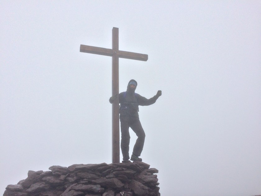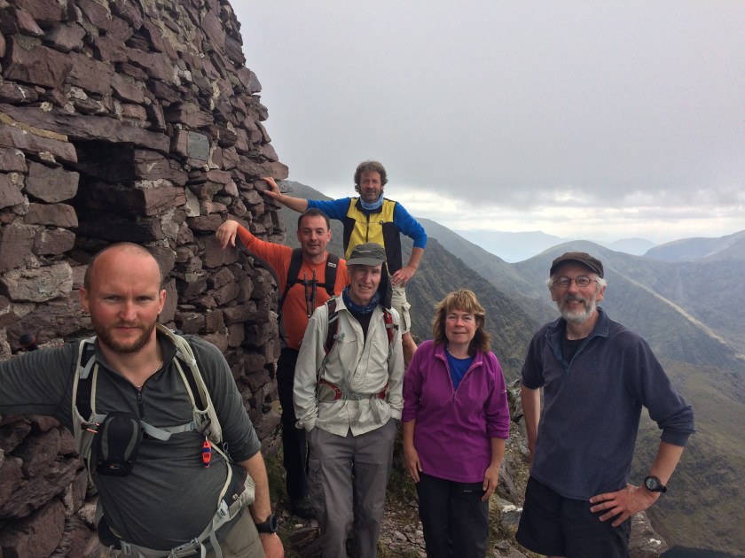 We scrambled up the ridge past Hags Tooth and over Beenkeragh and The Bones to Carrauntoohil, the summit of Ireland, adorned with its huge iron cross.