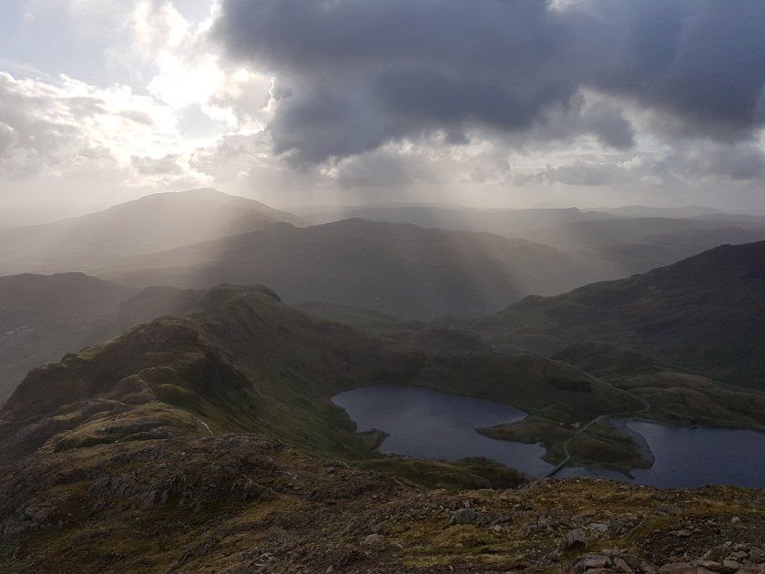 Then we met the crowds, so many people appearing from all directions and we even had to queue to climb the staircase to the summit trig point. It was a quick descent down the Miners Track back to the car as the masses streamed ever upwards. With the hordes of people, the fumes from the generators at the café and the train passing us a couple of times, I have to admit that the summit of Wales was one of the most uninspiring places I have ever visited.