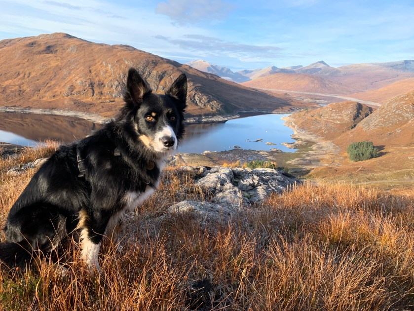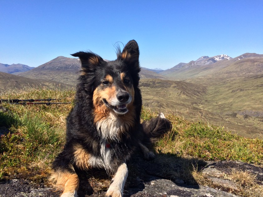 Life without a dog was hard and hillwalking without a canine companion seemed very lonely, so a few weeks after Molly died Ralph joined the family. He is a Border Collie from a working farm in Dunkeld and he spent the early months of his life learning recall, how to negotiate his way through a boulder field involved several visits to the Chalamain Gap and how not to fall into bogs (which he did, a lot). We gently built up his stamina taking care not to strain his joints and most importantly he learnt not to chase wildlife or livestock on the hills.